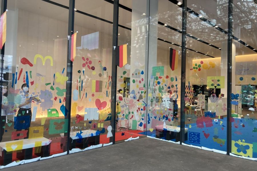 アオーレのガラスをカラフルに彩って遊びましょう♪