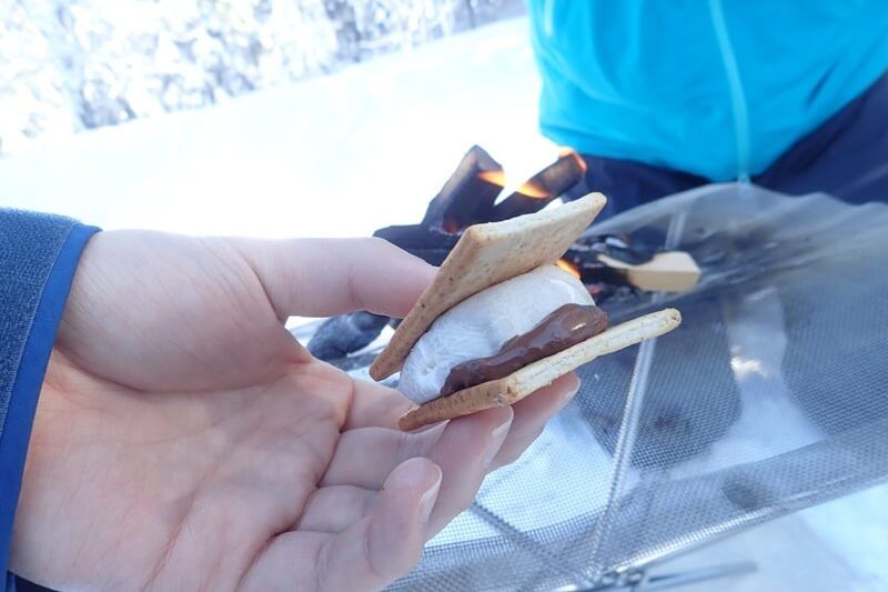 焚き火の炎を使って、スモアを作ります。