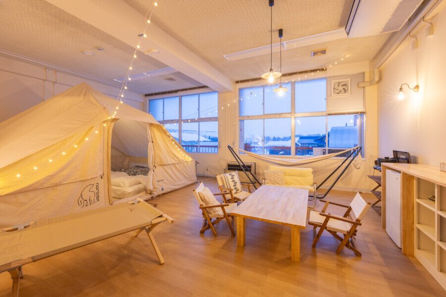 グラウンドは雪中キャンプができる魅力的なキャンプフィールドに、校舎は教室グランピングもできるゲストルームにリニューアルしました。