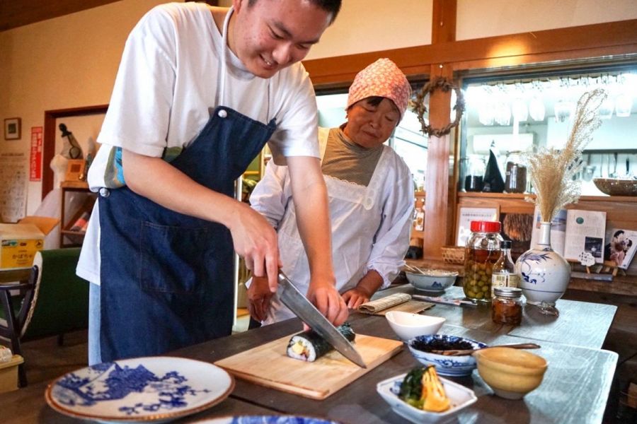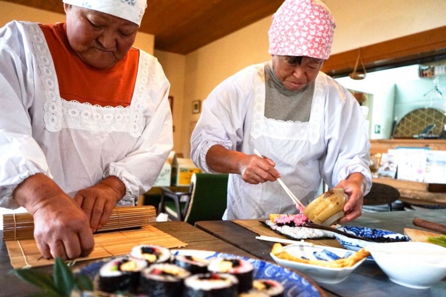 地元お母ちゃんと作る佐渡の『のり巻き作り』体験 ~海が見える高台のレストランの薬膳ランチ付き~