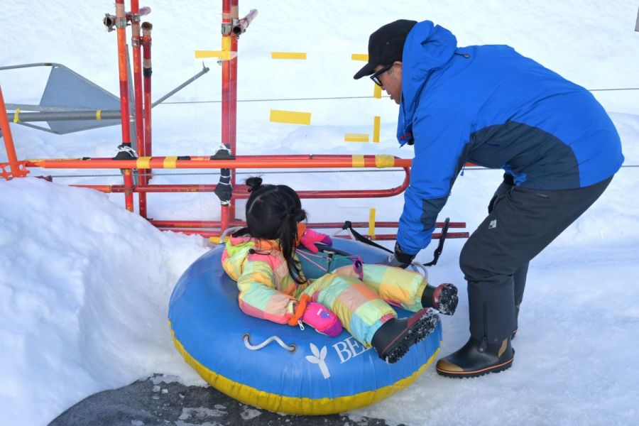 小さなお子さまは保護者と一緒に乗ることもでき、家族そろって雪あそびを満喫。