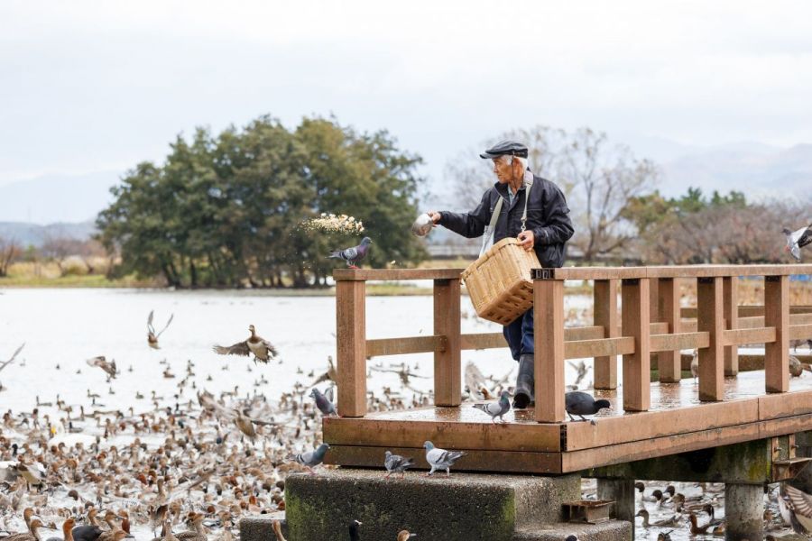 名物として知られる瓢湖の“白鳥おじさん”によるエサやりタイムも見どころ。鳴き交わす白鳥たちの賑やかな様子を間近で楽しめます。