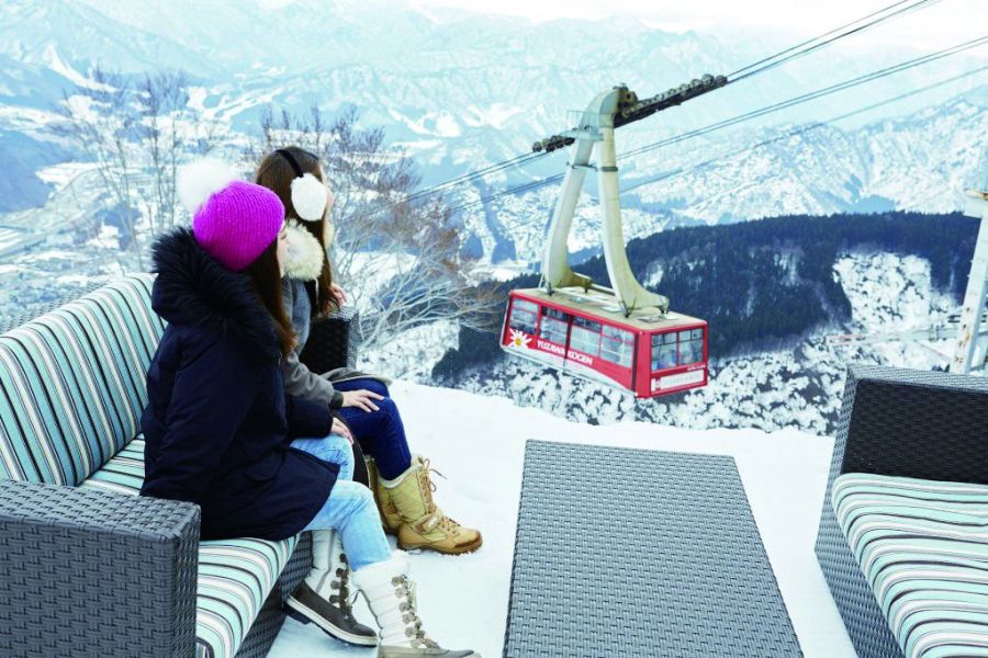 全長1,300m、世界最大級166 人乗りのロープウェイ。気軽に標高1,000m 地帯へ行くことができ、山頂のパノラマステーションでは、雪のテラスで絶景を堪能。谷川連峰や越後三山、湯沢の街並みが大パノラマで一望できます。