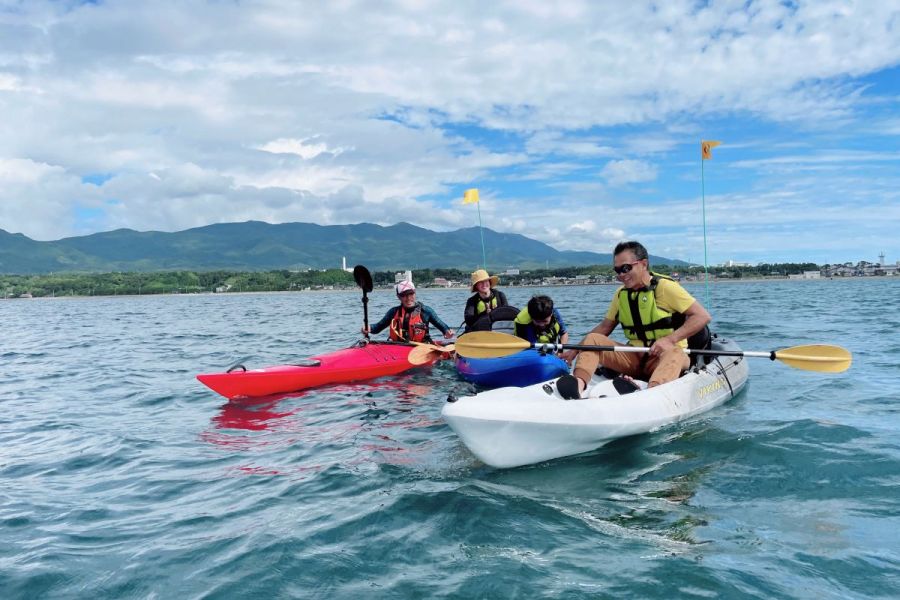初夏から秋にかけては波も穏やかで、カヤック初心者の方や小さなお子様連れのご家族にも安心。遠浅の海岸が続くため、海あそびデビューにもぴったりのエリアです。