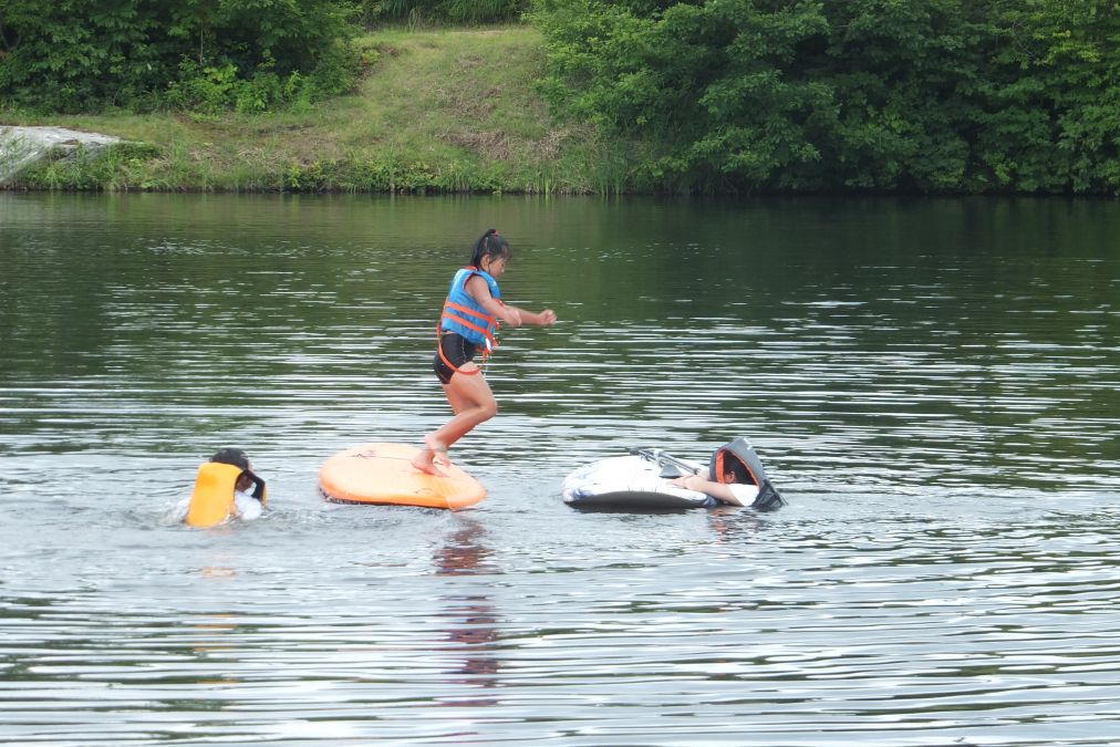 こうなると、ボード上に立ったり、水に飛び込んだりが、楽しくなる子どもたち。