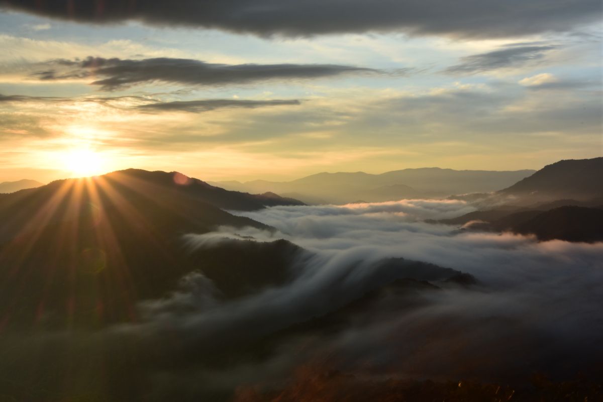 早朝に見ることができ、地形と朝日、早朝の湖が織りなす光景はとても美しく、神秘的。滝雲は夏から見られますが、寒暖差の大きい秋は発生率がアップするのでおすすめです。