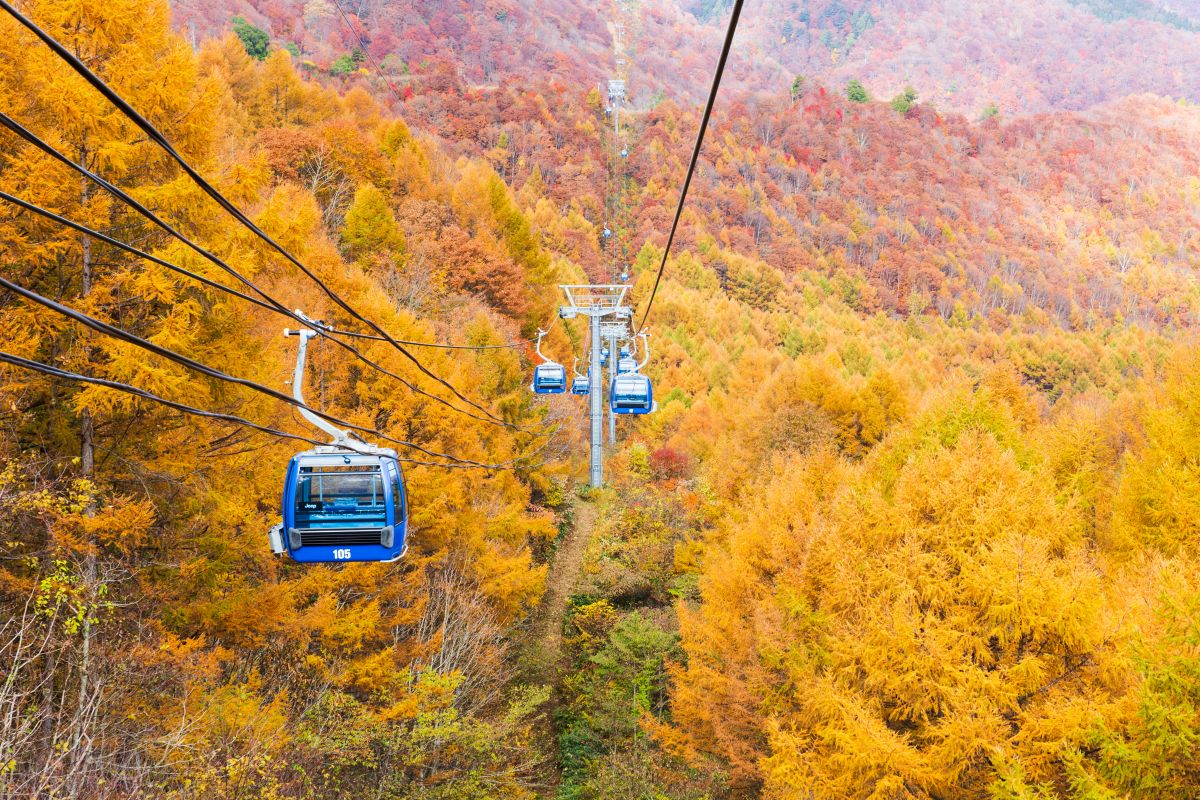 10月上旬~11月旬の紅葉シーズンのみの営業で、赤や黄色に日々色付く美しい紅葉と、広大な平標山や神秘的な二居湖を眺めながら、25分ほどかけて約5.5㎞の空中散歩を楽しむことができます。