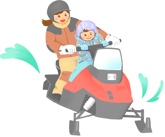 エンジンをかけて、自分で雪の上を走り出す感覚は最高!お子様を前に乗せて(※)、家族で冬の大自然を思いっきり満喫しましょう。