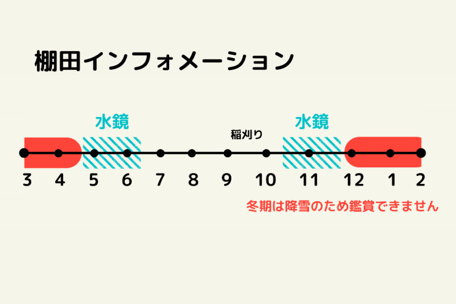 | 営業時間 | 【冬期間のご案内】 冬期間の駐車場および展望台は、除雪を行っておらずご利用できません。利用再開は、雪解けの時期によってGW明けになることもあります。冬季の無理な運転や立ち入りは危険なうえ、地元の方々にもご迷惑をおかけすることになりますので、独自の判断でのご来訪はご遠慮ください。 冬の棚田をご覧になりたい方は、専用のプランをご紹介しますのでお問合せください。 |