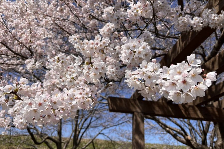 また周辺にある信濃リバーサイドパークの多目的広場を取り囲むように咲き誇る桜も見応えがあります。