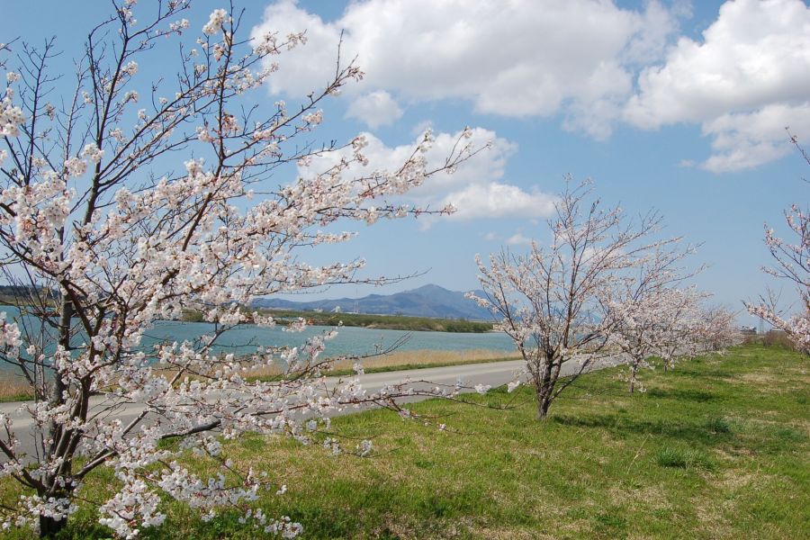 まんぼんざくらしょくじゅたい中之島地域の桜の名所で、雄大に流れる信濃川に沿って、与板橋より大河津分水路までの桜並木は見事です。