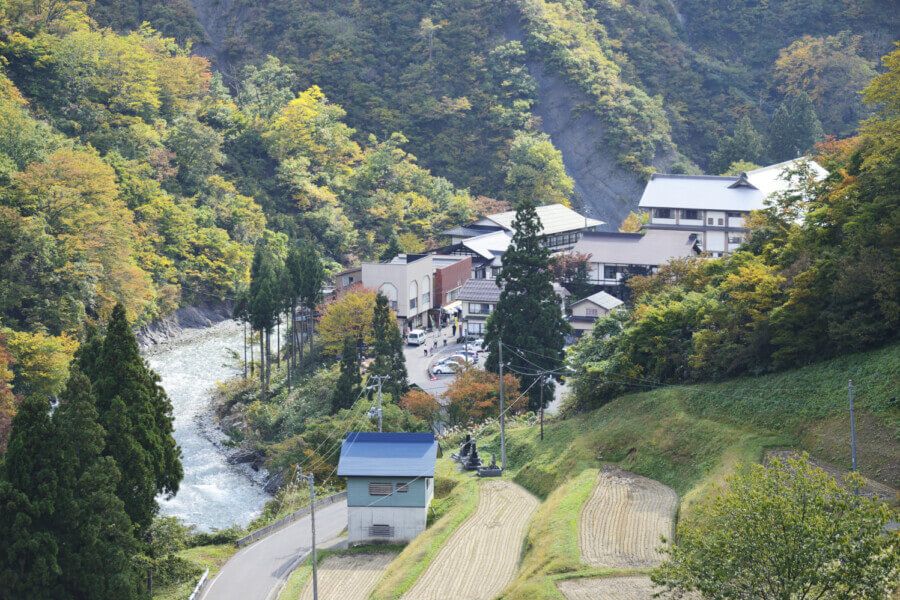 日本三大峡谷「清津峡」のふもとにある『清津峡温泉郷』。山あいにひっそりとたたずむ温泉街は秘境の雰囲気が漂います。