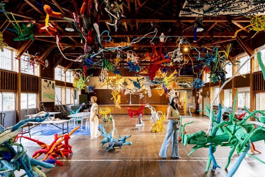 十日町市の山と山に囲まれた場所に鉢という集落があります。その中心にある小学校は廃校になり、集落の人々と絵本作家・田島征三によって小さな美術館になりました。カラッポになった校舎を舞台に、最後の在校生と学校に住みつくオバケたちとの物語が、絵本『学校はカラッポにならない』となり、その物語が校舎いっぱいに広がります。体験型の“空間絵本”美術館として、訪れる人を楽しませています。みんなの笑い声を食べるトペラトト、夢をぺしゃんこにするドラドラバン。学校にひそむたくさんのオバケたちに会いにきませんか?