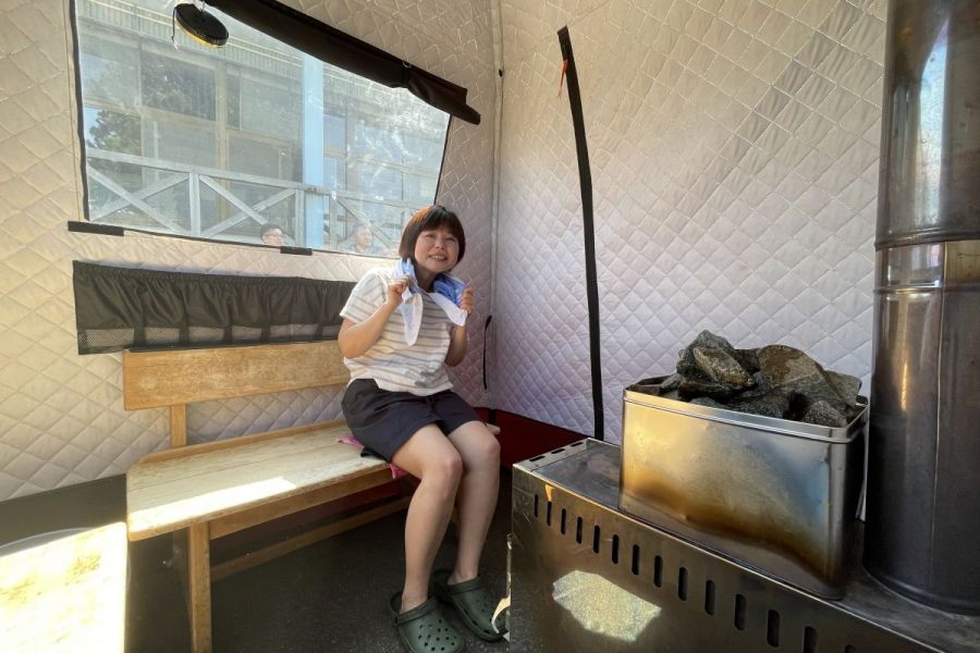 | 備考 | ロシア製3層式テントサウナMORZH(モルジュ) ・テ ン ト :定員4名(W205cm×D205cm×H195cm A=4.2㎡) ・ストーブ:AISI 430スチール / 最高温度120℃(R3/6/10実測値) ※参考:115℃(R3/3/7実測値) |