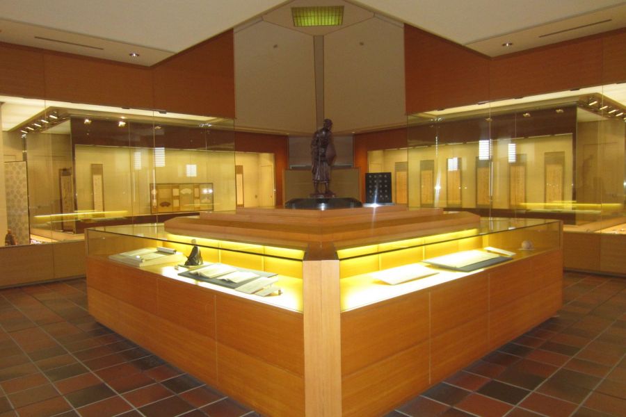 良寛と愛弟子、貞心尼の書や詩歌を中心に、ゆかりの文人墨客の作品を数多く展示している美術館。ロビーに面した中庭や、春には茶会も開かれる「指月亭(しげつてい)」までの回廊など、鮮やかな新緑から白一色に染まる雪景色までの四季折々の彩りに心癒される。