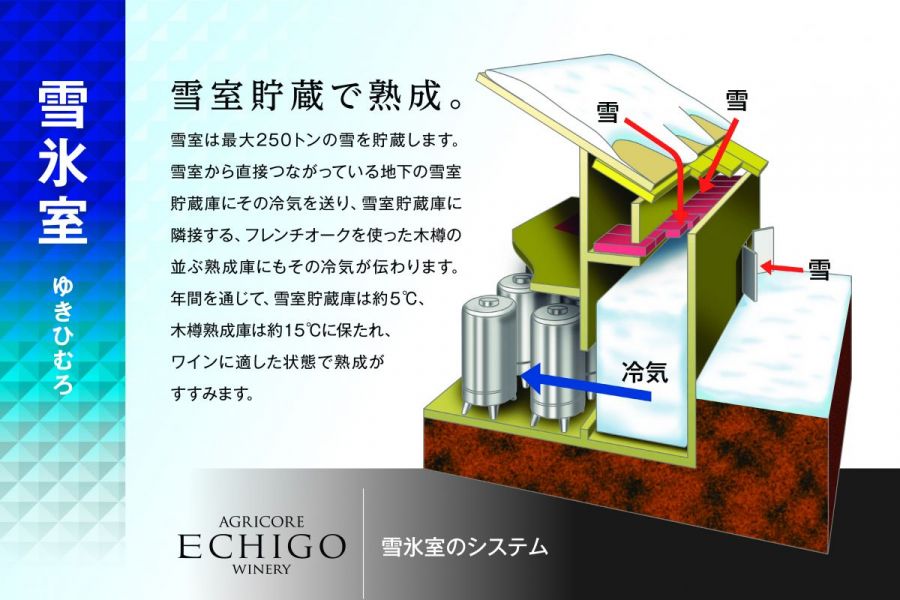 あぐりこあえちごわいなりーワイナリーでは雪室見学、試飲(有料)が楽しめ、ワインレストランでは葡萄畑を眺めながら、地元食材を活かした多彩なメニューと越後ワイン各種を堪能できます。