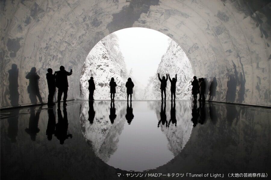 雄大な柱状節理の岩肌とダイナミックな清津川の景観は素晴らしく、訪れる人々に深い感動を与えます。さらに2018年の大地の芸術祭にて、中国の建築家集団「マ・ヤンソン / MADアーキテクツ」のアート作品としてトンネル内部を改修。大幅なリニューアルに加えて、エントランス施設も設置。自然の「5大要素」(木、土、金属、火、水)を利用しながら、建築的な空間とアーティスティックな雰囲気をつくりだし、この歴史あるトンネルを変容させました。