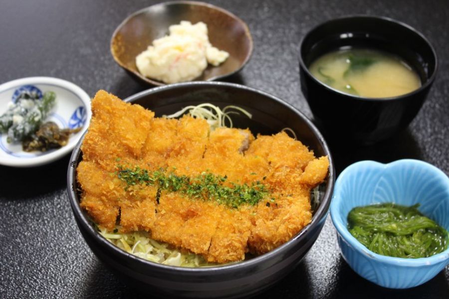 食堂では地元食材「朝日豚」を使用したカツ丼や定食が人気メニューとなっている他、地元の旬の食材を生かした料理をご提供します。