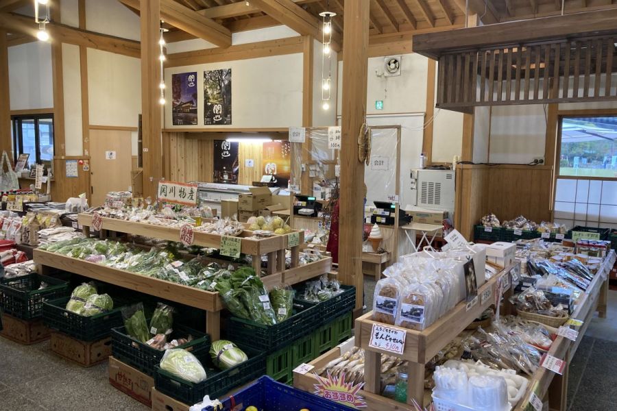 ちぐらの内の農産物直売所。関川村の物産や地元でとれた野菜などが販売されている。季節ごとに売られるものが変わるので、訪れる楽しさがある。