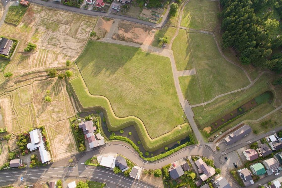 春日山城史跡広場では、調査によって確認できた土塁や堀、堀立柱建物などが復元され、中世の春日山城を体感できます。
