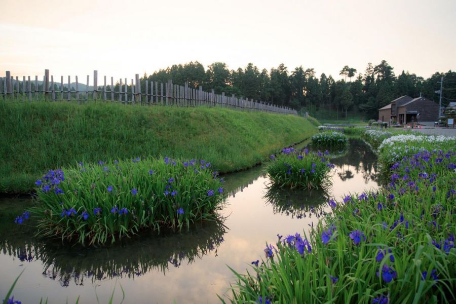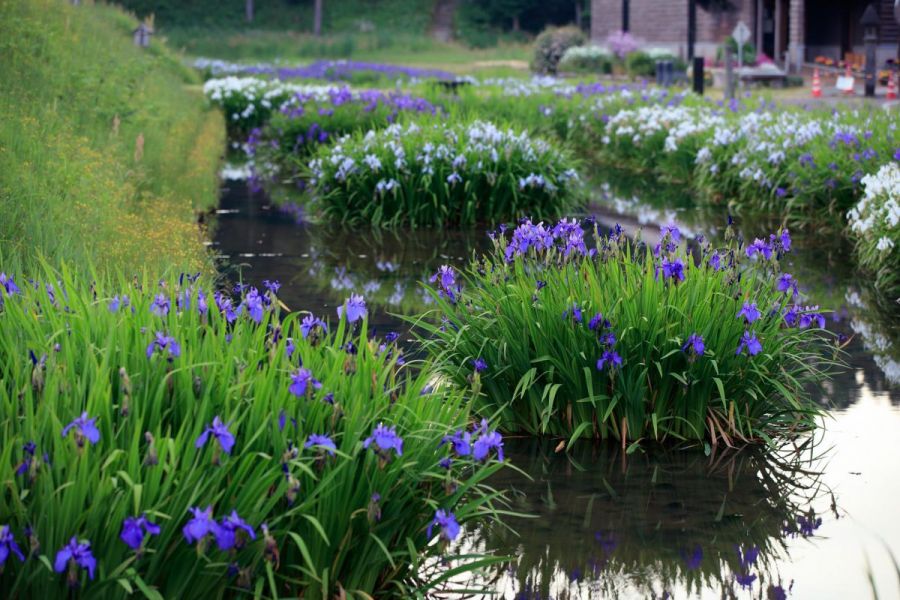 監物堀に植えられたカキツバタは、5月上旬が見頃です。