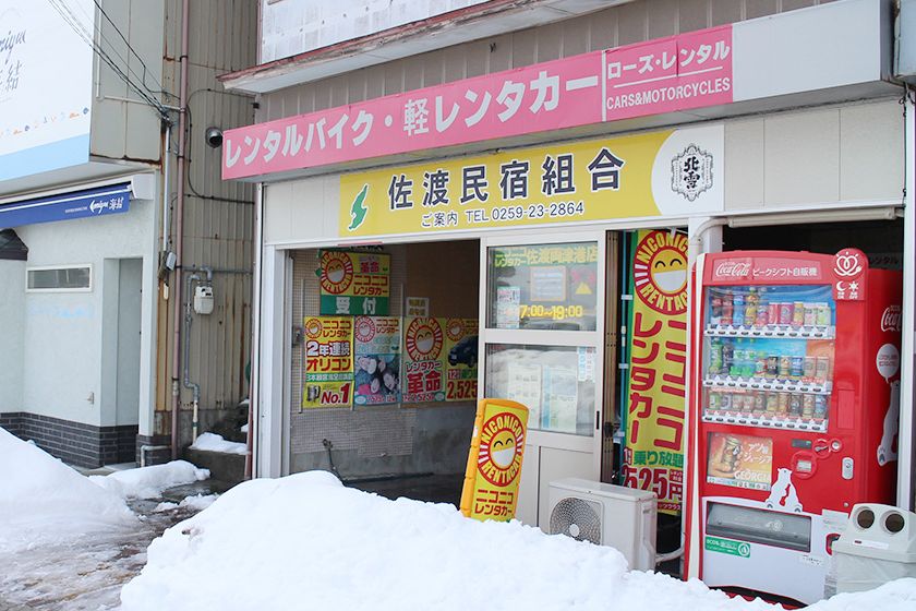 ろーずれんたる両津港佐渡汽線ターミナルからすぐ、バイクのレンタルも行っています。